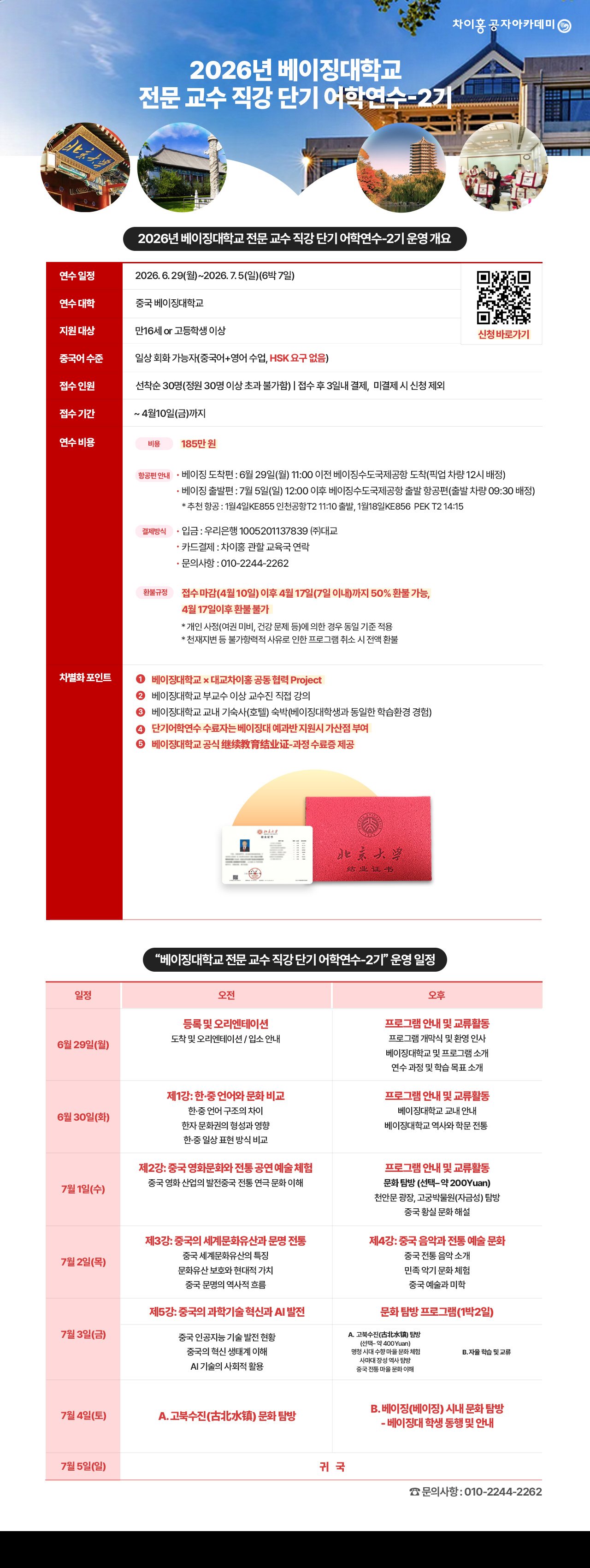 베이징대 전문교수 직강 방학연수를