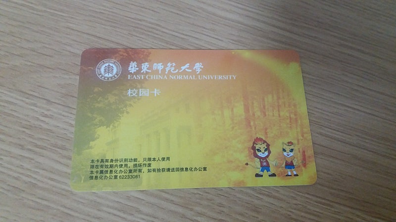 이건 화사대 캠퍼스카드인데요 이걸로 도서관도 갈 수 있고 학교안 슈퍼나 과일가게 혹은 학생식당에서 결제 할 수 있습니다 하서식당(河西食堂) 밑이나 쯔푸바오로 충전해서 사용 할 수 있습니다