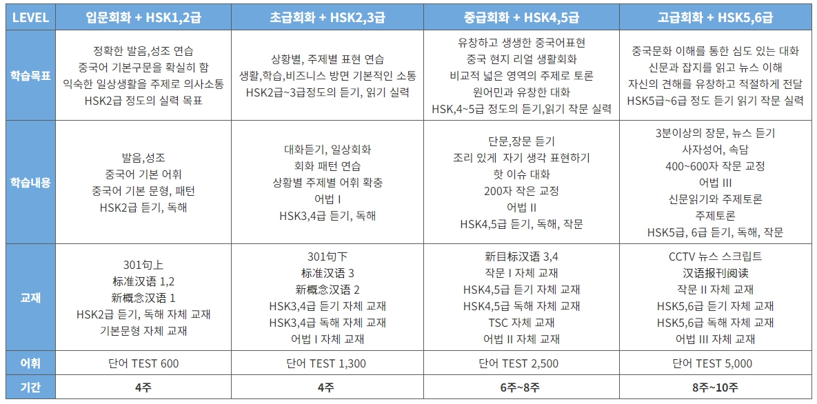 수업구성 - 진격의 중국어 코스(HSK+중국어회화)+체험학습+탐방